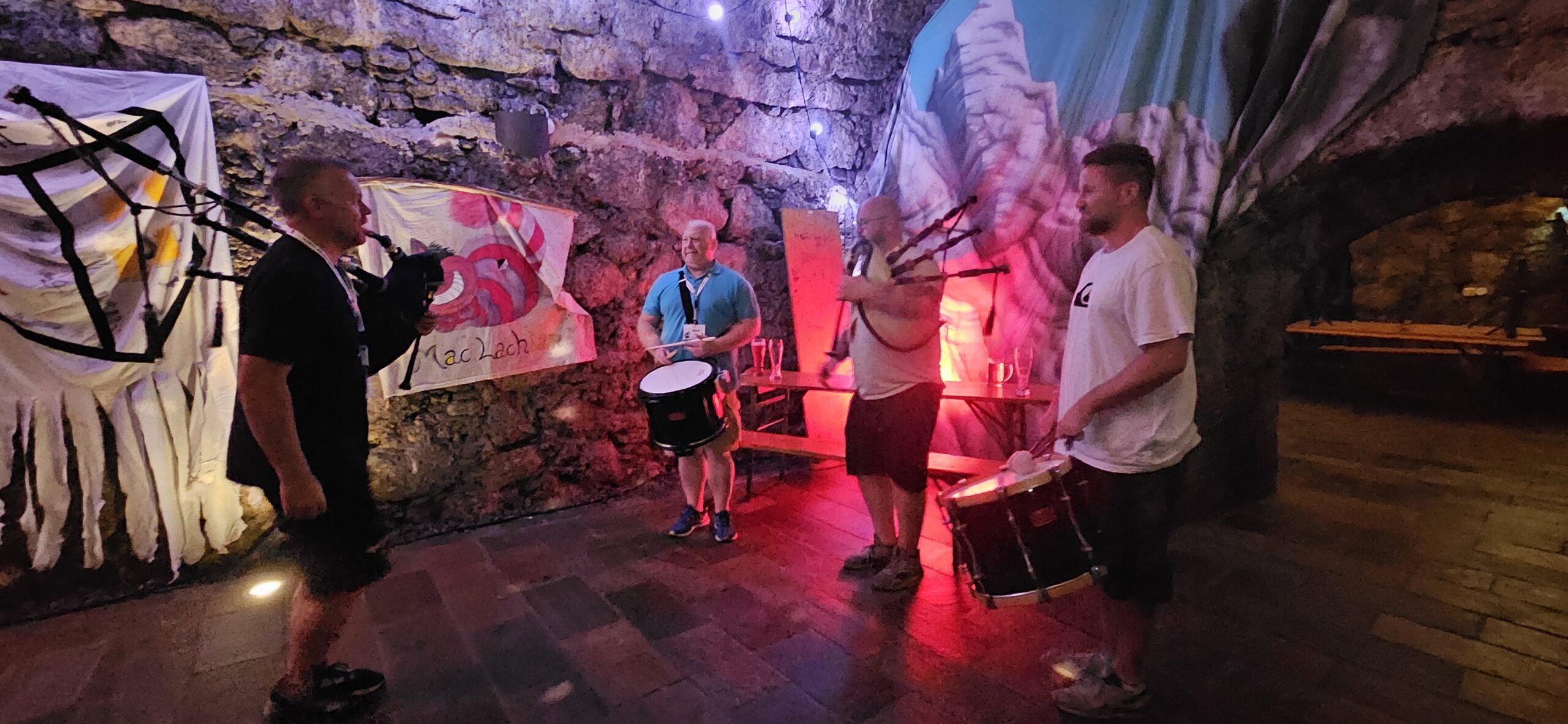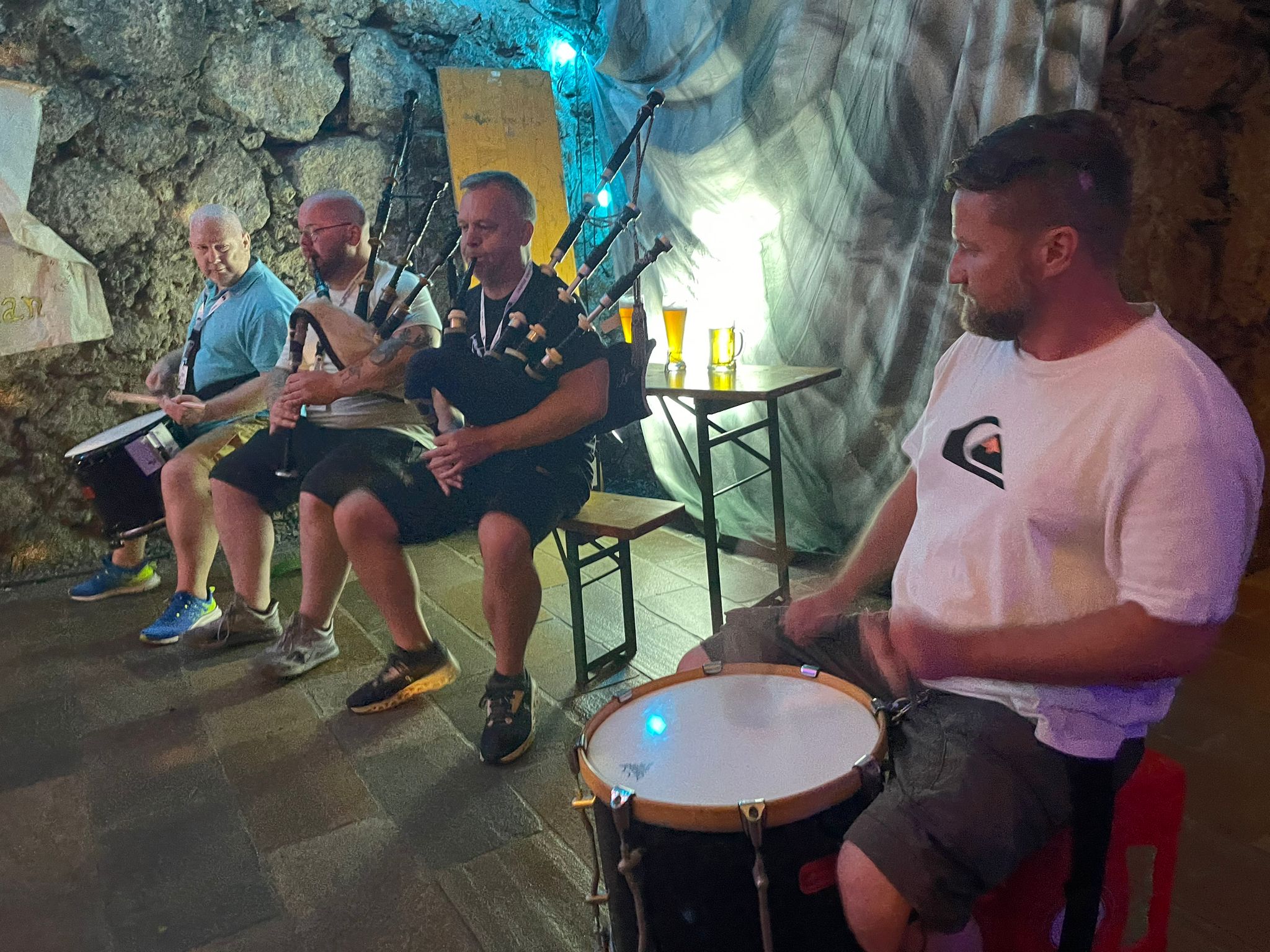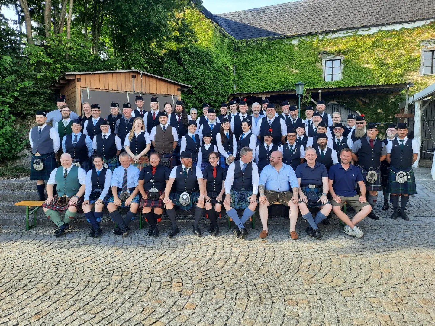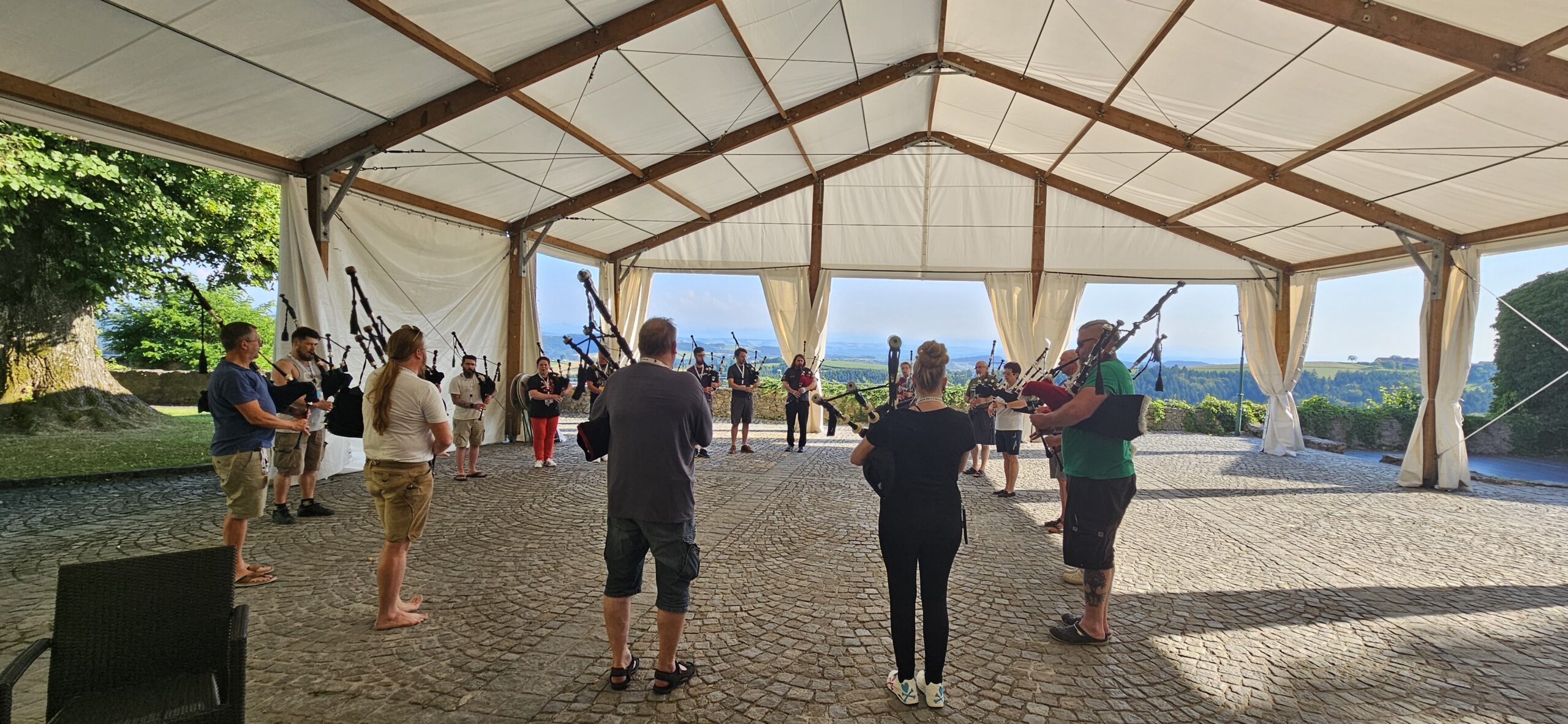 Hierzu treffen sich Dudelsackspieler, Snare-, Tenore- und Bass-Trommel-Spieler auf der Burg Kreuzen in Oberösterreich.